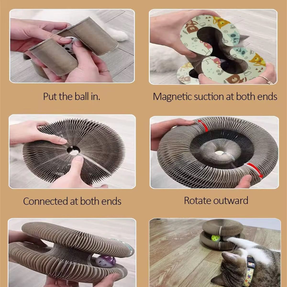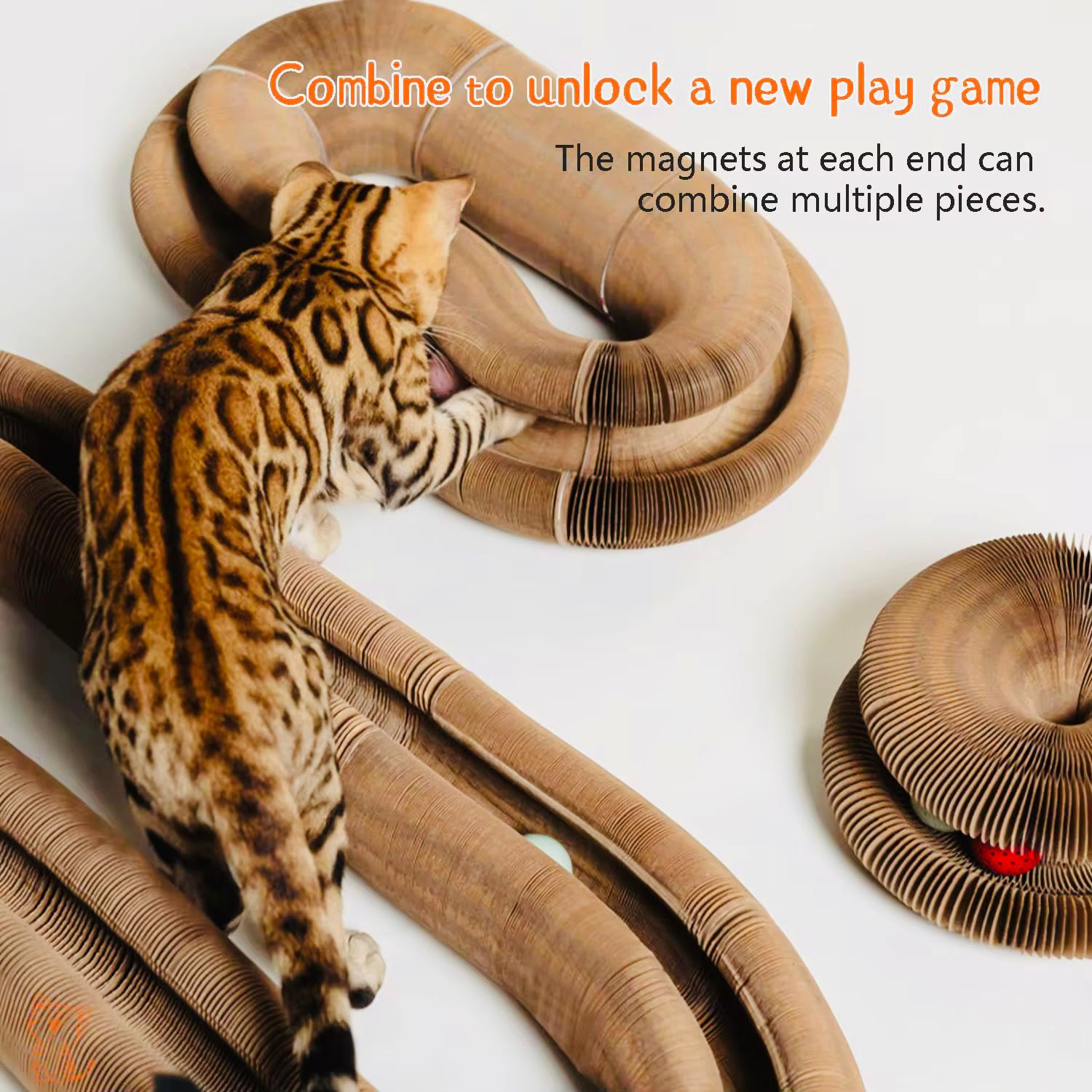 Your cat can scratch, rest, and even chase balls inside the track, making playtime more exciting. The shape-changeable design creates unpredictable structures that stimulate curiosity and satisfy your cat’s natural scratching instincts.